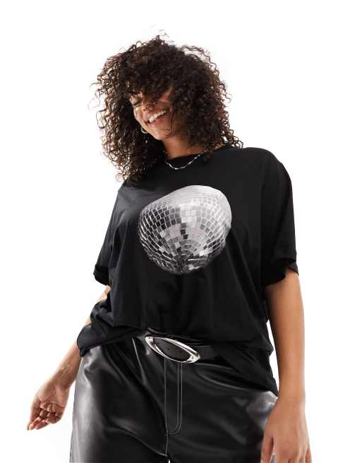 ASOS DESIGN Curve regular fit t-shirt with disco ball graphic in black