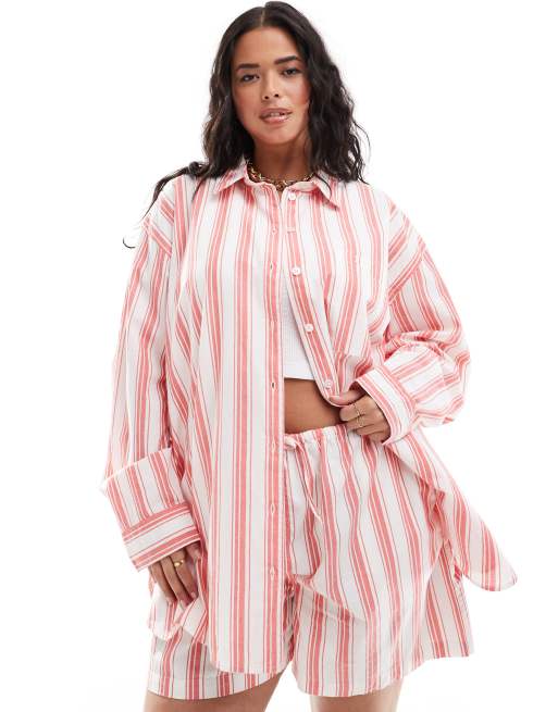 ASOS DESIGN Curve relaxed shirt in red deckchair stripe