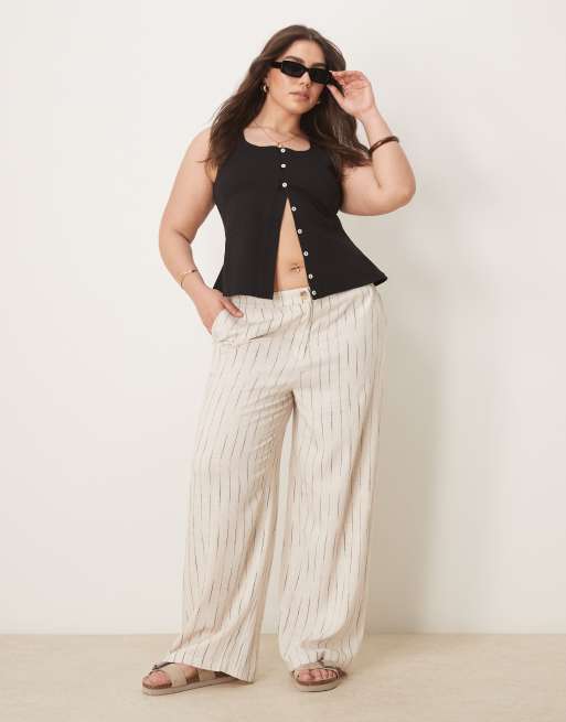 ASOS DESIGN Curve relaxed straight leg trousers with linen in natural squiggle stripe