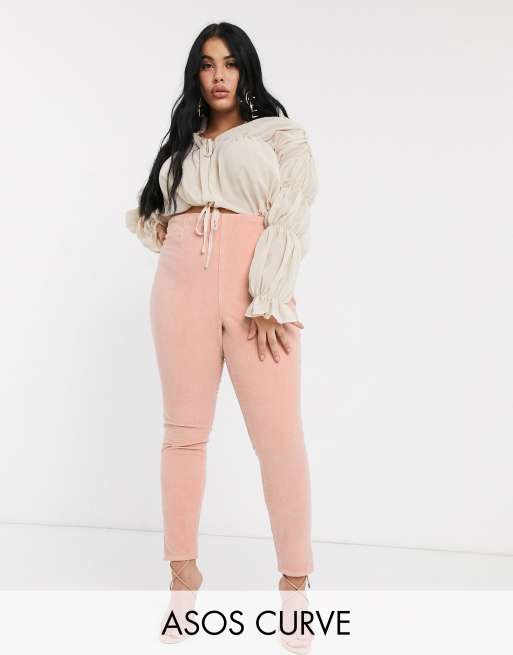 ASOS DESIGN Curve rivington high waisted cord jegging in pink
