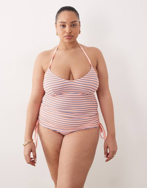 ASOS DESIGN Curve Sally tankini bikini top in textured stripe