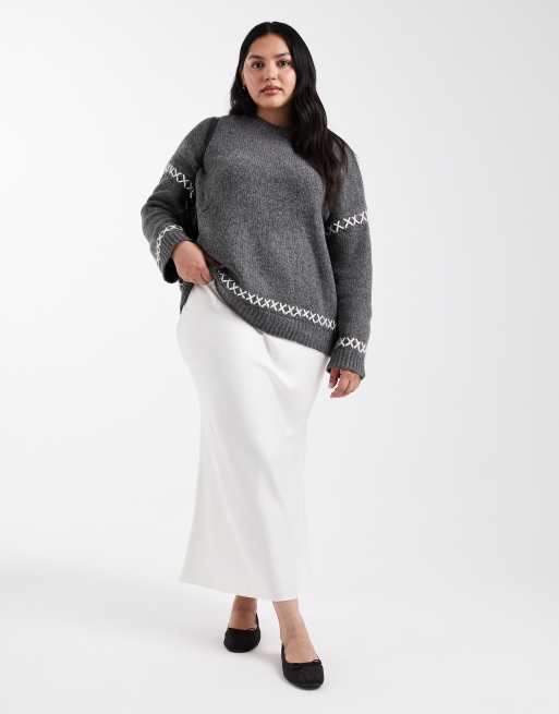 ASOS DESIGN Curve satin bias maxi skirt in winter white