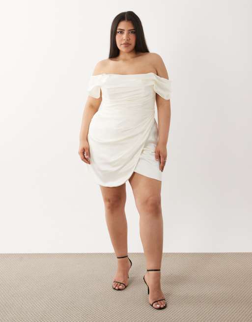 ASOS DESIGN Curve satin off shoulder mini dress in ivory