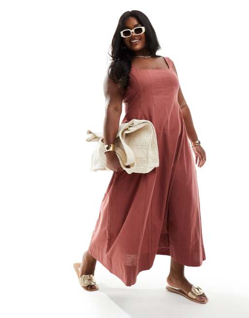 ASOS DESIGN Curve seamed maxi tennis sundress in rust