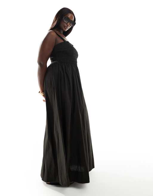 ASOS DESIGN Curve shirred bust maxi beach dress in black