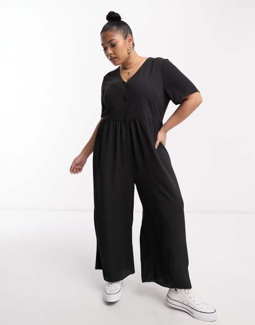 ASOS DESIGN Curve short sleeve tea jumpsuit in black