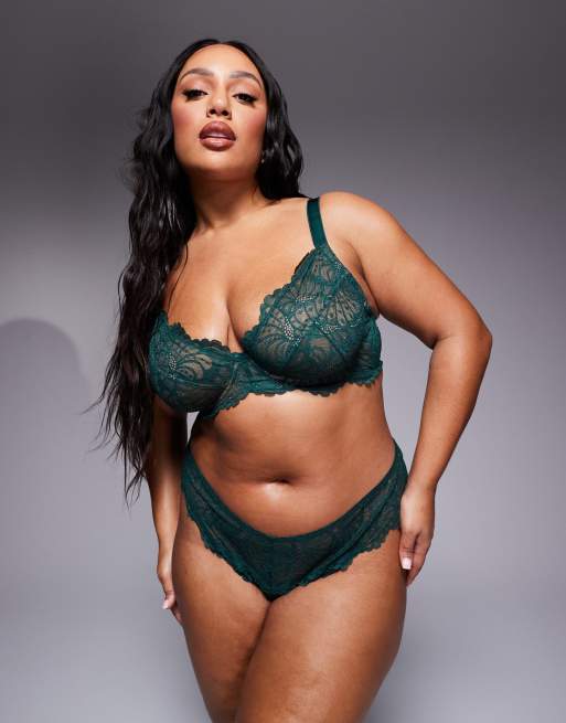 ASOS DESIGN Curve Sienna lace underwired plunge bra in forest green