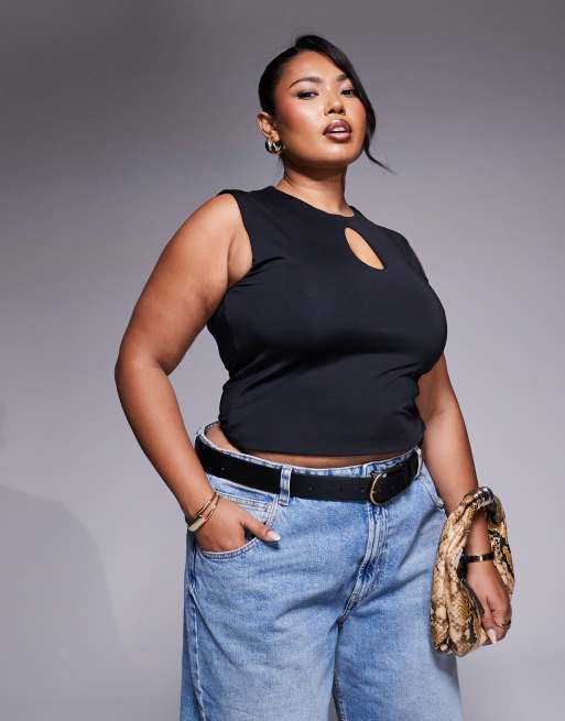 ASOS DESIGN Curve slinky keyhole tank top in black