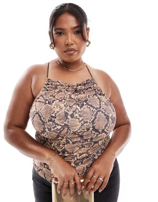 ASOS DESIGN Curve slinky ruched square neck cami top in animal