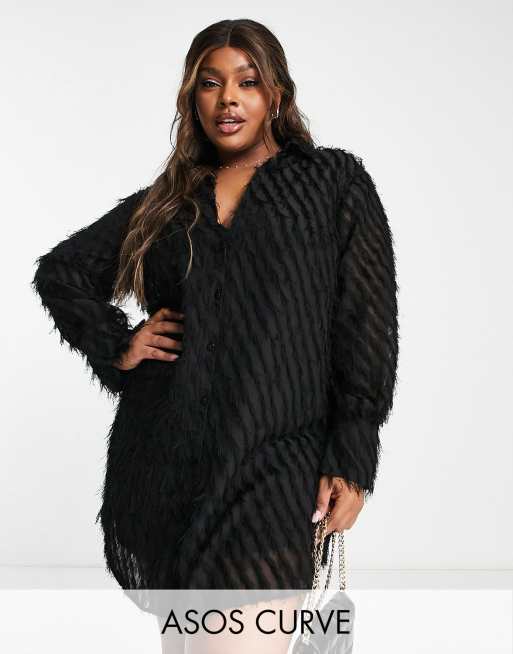 ASOS DESIGN Curve slouchy shirt mini dress in fluffy textured fabric in black