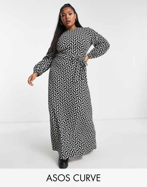ASOS DESIGN Curve smock maxi dress with belt in mono geo print