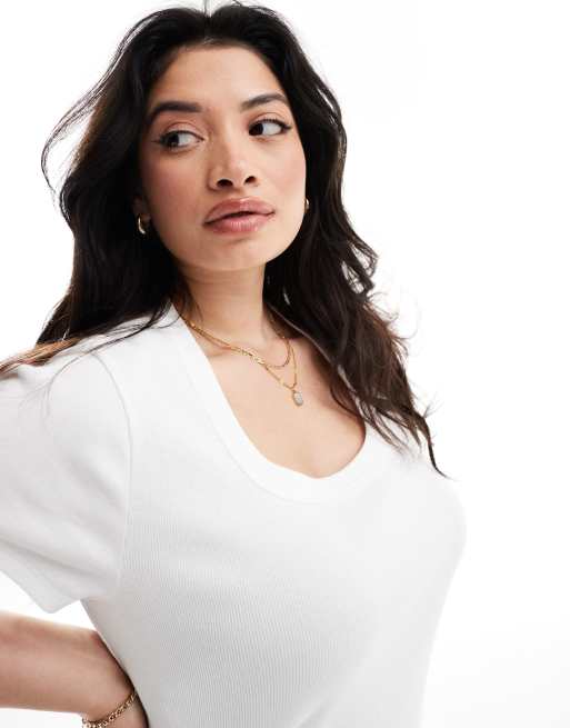 ASOS DESIGN Curve square neck cap sleeve t-shirt with thick binding in white