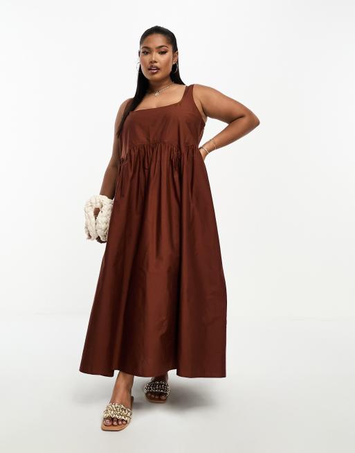 ASOS DESIGN Curve square neck midi smock sundress in chocolate