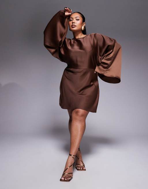 ASOS DESIGN Curve structured batwing playsuit with skort detail in chocolate