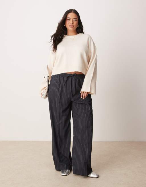ASOS DESIGN Curve tailored pull on trousers in navy stripe