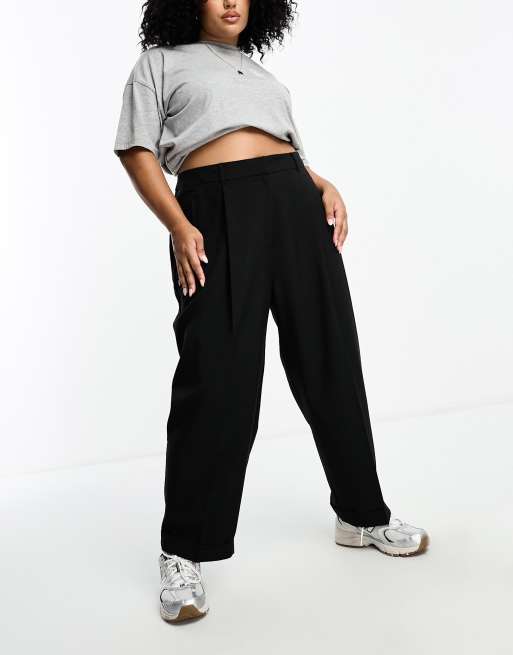 ASOS DESIGN Curve tapered tailored trouser with turn up hem in black