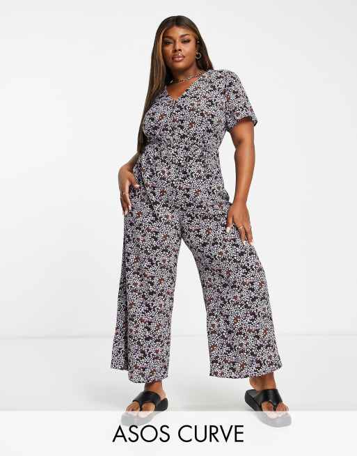 ASOS DESIGN curve tea button front jumpsuit in lilac floral