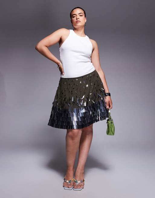 ASOS DESIGN Curve tear drop sequin mini skirt in green