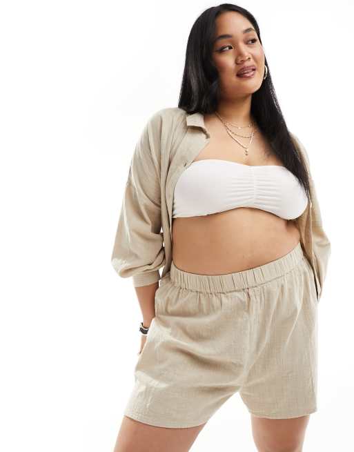 ASOS DESIGN Curve textured beach short co-ord in natural
