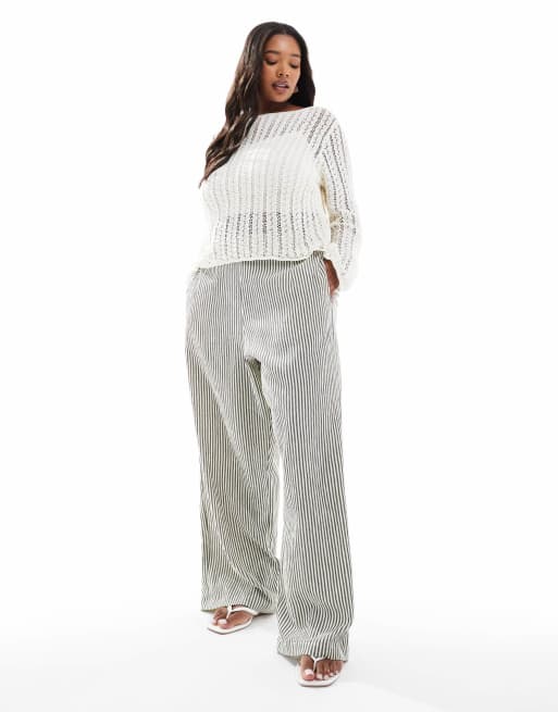 ASOS DESIGN Curve textured pull on straight leg trousers in mono stripe