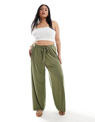 ASOS DESIGN Curve tie belt wide leg trouser in khaki