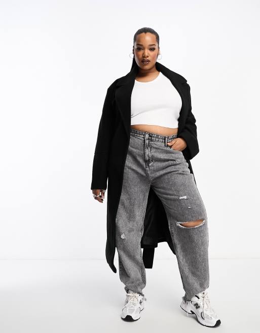 ASOS DESIGN Curve tie waist mid length coat in black