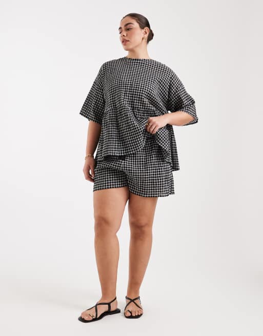 ASOS DESIGN Curve tie waist pocket detail shorts in check