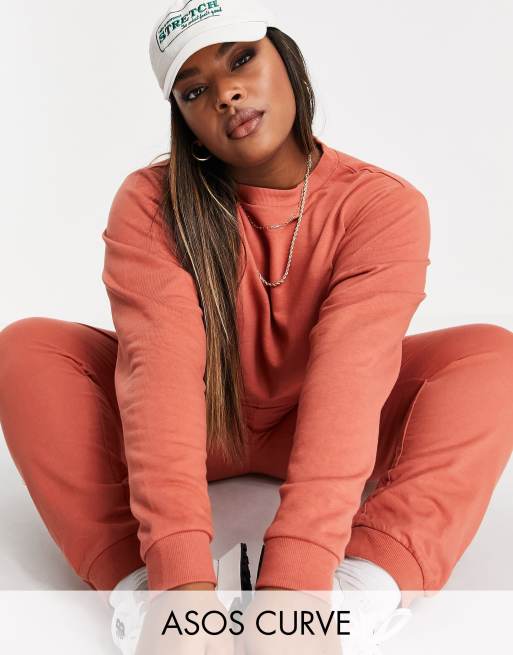 ASOS DESIGN Curve tracksuit slim sweat / jogger in clay