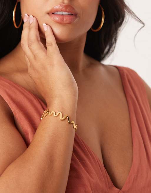 ASOS DESIGN Curve waterproof stainless steel bracelet with wiggle detail in gold tone