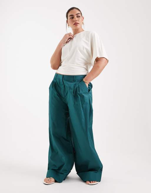 ASOS DESIGN Curve wide leg trousers with turn up in teal