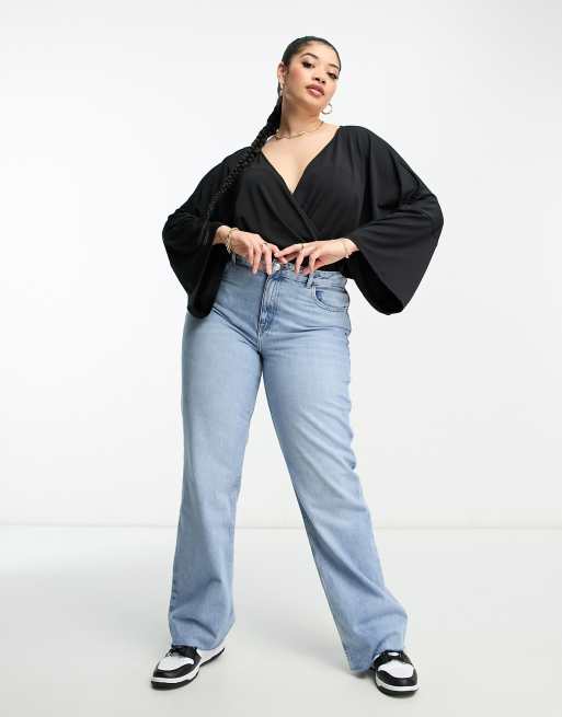 ASOS DESIGN Curve wrap bodysuit with angel sleeve in black