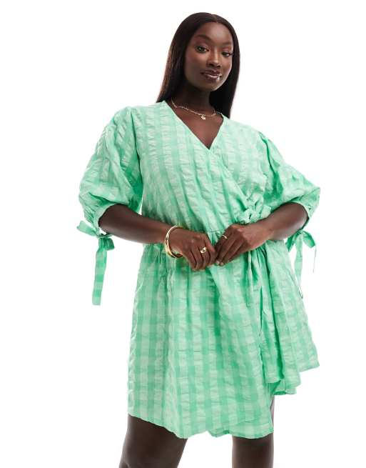 ASOS DESIGN Curve wrap mini smock dress in bright gingham