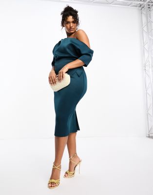 ASOS DESIGN Curve wrap pencil midi dress in forest green