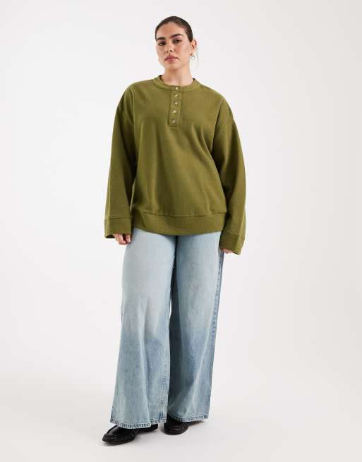 ASOS DESIN Curve Supersoft oversized henley jumper - KHAKI - DGREEN