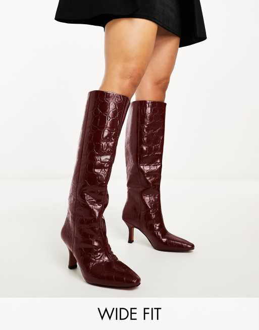 ASOS DESIGN Wide Fit Campbell pull on knee boots in burgundy