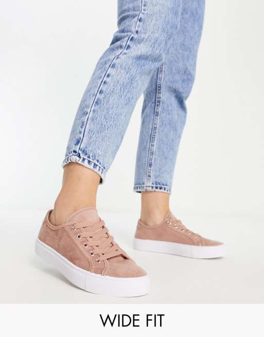 ASOS DESIGN Wide Fit Dizzy lace up trainers in warm beige