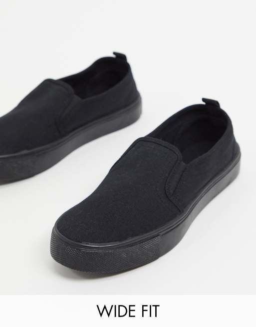 ASOS DESIGN Wide Fit Dotty slip on plimsolls in black