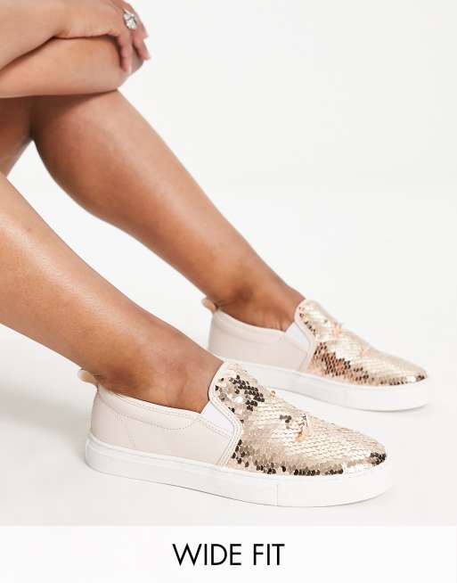 ASOS DESIGN Wide Fit Dreamy slip on trainers in rose gold sequin