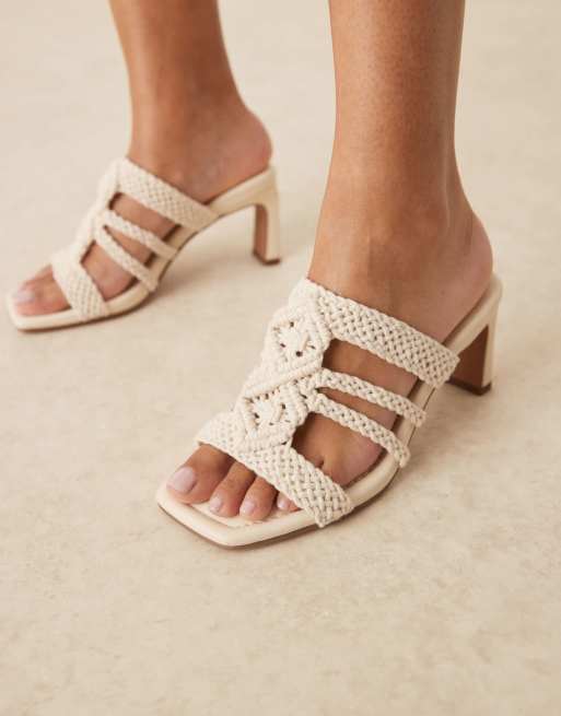 ASOS DESIGN Wide Fit Heidi weave detail mid heeled mules in off-white