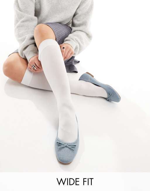 ASOS DESIGN Wide Fit Lullaby basic bow Ballet in Denim