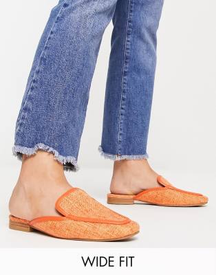 ASOS DESIGN Wide Fit Main-Street flat mules in orange