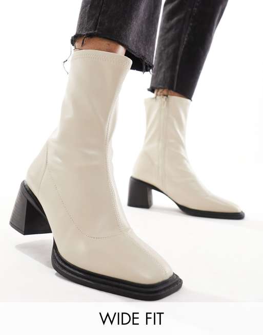 ASOS DESIGN Wide Fit Rival smart mid-heel boots in stone