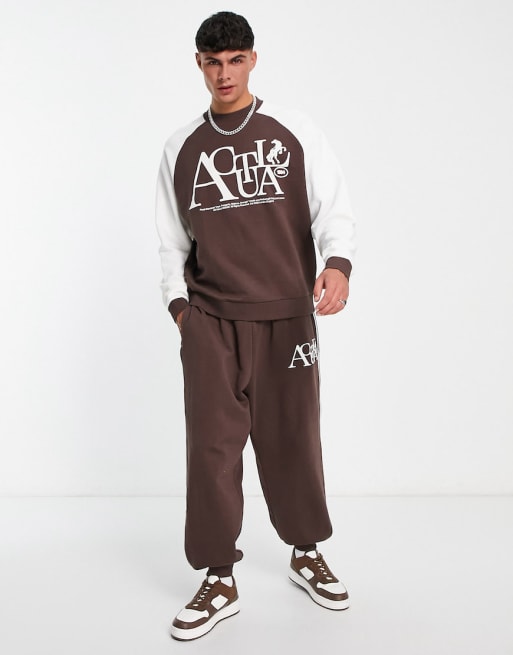 ASOS Actual co-ord oversized with raglan sleeves and logo in brown