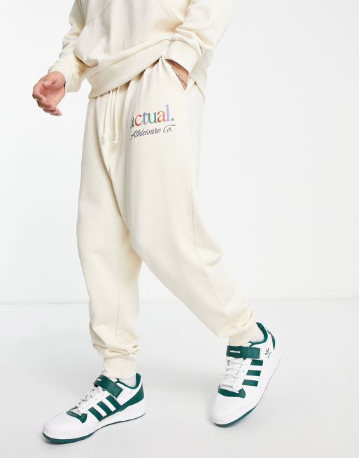 ASOS Actual co-ord relaxed brushed cotton jogger with multi colour logo print in cream