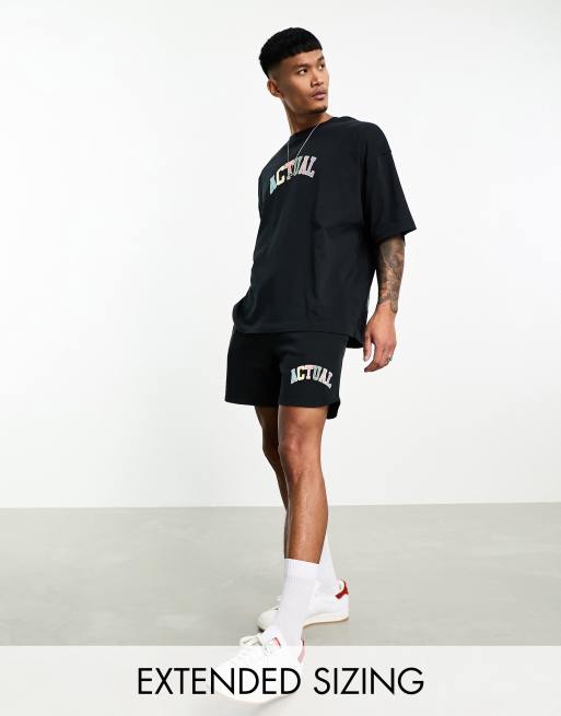 ASOS Actual co-ord relaxed runner short with rainbow logo in black