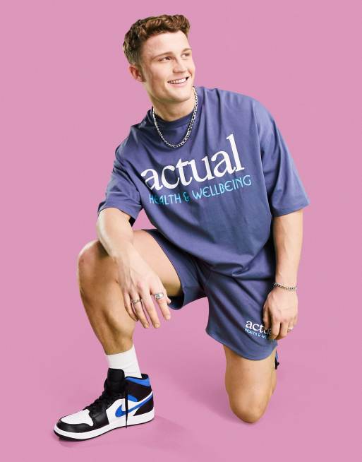 ASOS Actual health and wellbeing co-ord oversized heavyweight t-shirt with logo print in washed blue