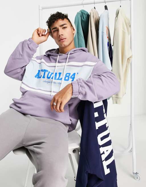 ASOS Actual oversized hoodie with colour block front panel and logo print in purple