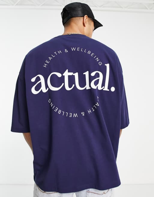 ASOS Actual oversized t-shirt with back logo print in navy