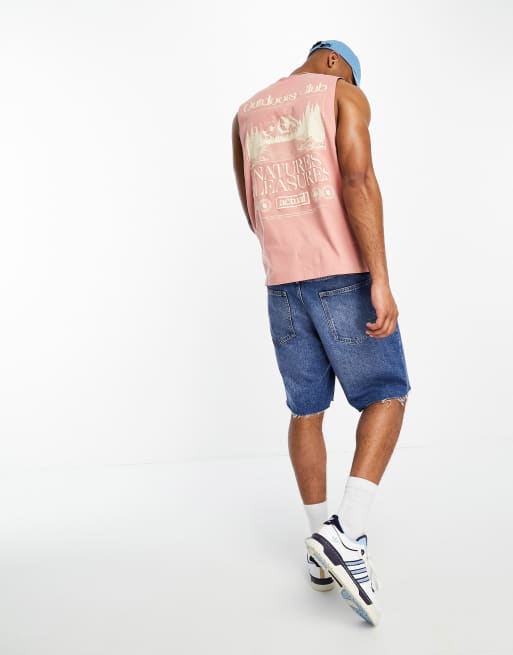 ASOS Actual relaxed vest with outdoors back graphic print in pink