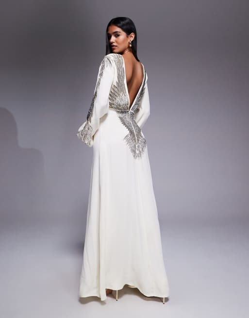 ASOS ARCHIVE blouson mid dress with wing embellished back in buttermilk